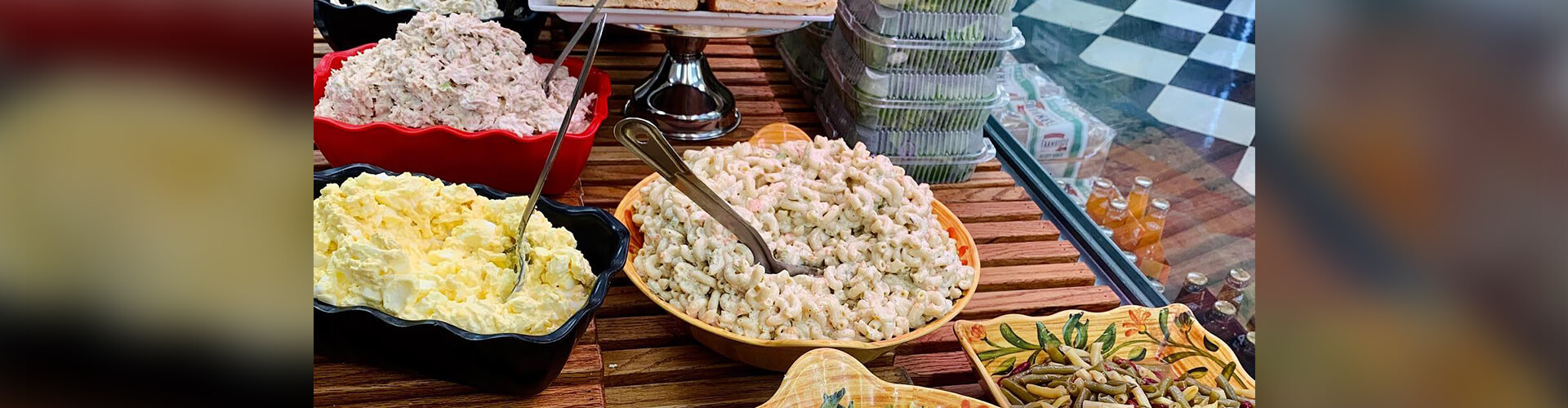 The place is modest. It’s a deli with tables. But customers don’t come for the surroundings. They come for the food – to eat in, take out, or for a big catered party at home. So it’s surprising what comes out of the small kitchen.